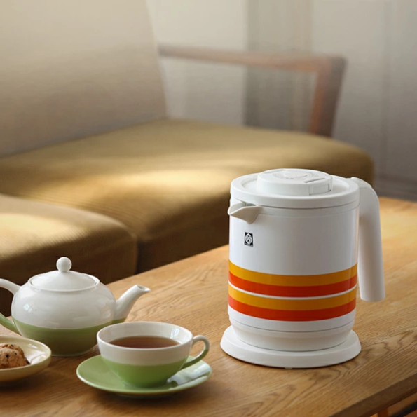 昔懐かしのポットを彷彿とさせる、昭和レトロなデザインが魅力の電気ケトル。ポピー(花柄)とオレンジストライプの2種類があり、いずれも淡く落ち着いた雰囲気を放つ。見た目はレトロでも蒸気レス構造や転倒お湯漏れ防止構造など電気ケトルに必須の機能を備えている。本体が熱くなりにくい二重構造も嬉しい。ふた部分はワンタッチで着脱でき、手入れも簡単。