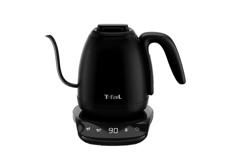 ドリップをコントロールしやすい注ぎ口を備え、コーヒーの美味しさを引き出す温度設定が可能な、T-falの小型電気ケトル。狙った場所に必要な分量のお湯を注げるため、コーヒードリップから普段使いまで幅広く対応する。人間工学に基づいた設計のハンドルは、指と手のひらにフィットし、お湯を注ぐ際にコントロールしやすい。お湯の温度は電源プレートで設定でき、温度が表示されるため直感的に操作できる。