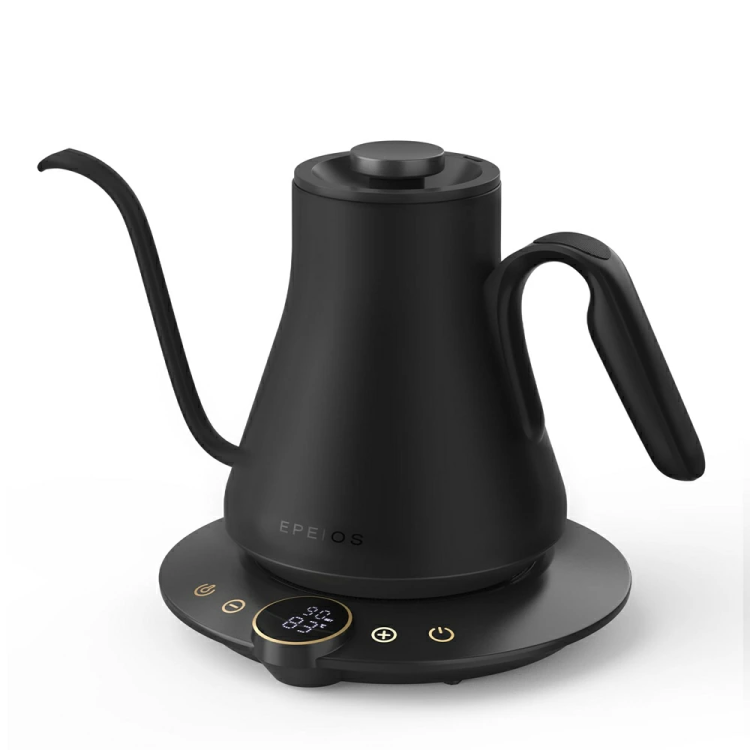 2020年に東京で生まれたライフスタイルソリューションブランドの「EPEIOS(エペイオス)」から、 “初めて買う最後のドリップケトルに”をコンセプトに開発された小型電気ケトル。水流の量や速度をコントロールしやすい注ぎ口の形状により、コーヒー豆の香りを最大限に引き出せる。白湯やコーヒー、紅茶を美味しく飲めるよう、38~100℃まで1℃単位で温度の調節が可能だ。HD LED表示パネルを搭載し、ケトル内の温度や設定済みの機能をいつでも確認できる。容量は0.9L。