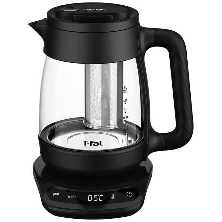 着脱可能な茶こしが付属し、ティーポット代わりにも使える小型電気ケトル。緑茶や紅茶をそのままつくれ、1~20分まで1分単位での煮出し時間を設定可能だ。40~100℃まで8段階の温度設定ができ、60分間の保温も可能だ。本体は耐熱ガラス製で、ハーブなどを入れても匂いが移りにくい。ふたの給湯ロックボタンが上がった状態なら転倒お湯漏れロック機能が働き、本体が倒れてもお湯がこぼれにくい。