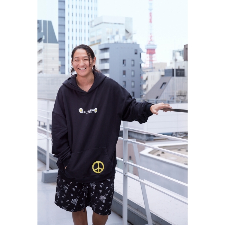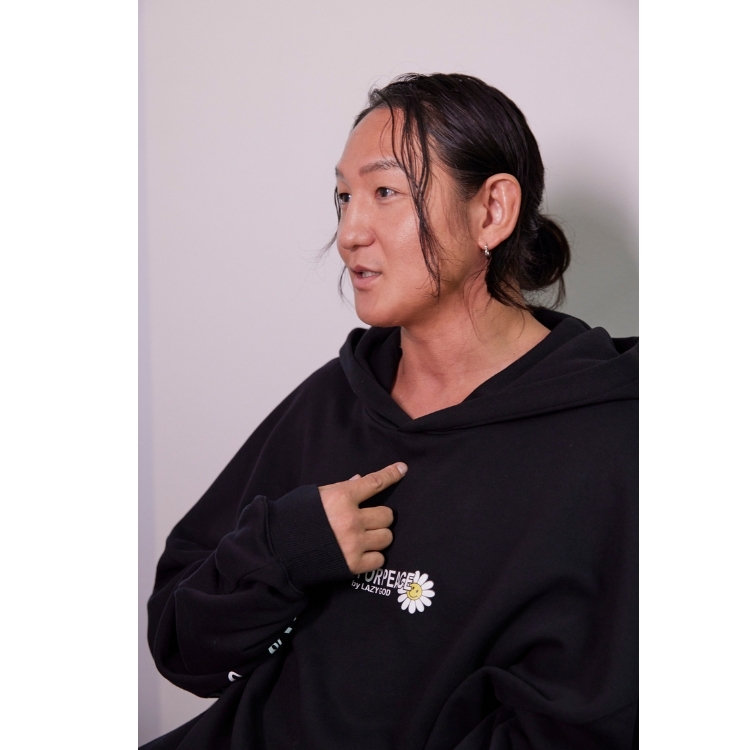 そうですね。LAZY GOD(レイジーゴッド)というブランドをやっていて、今年で6年目。自分でデザインして、毎年しっかりつくっていますよ。LAZY GOD=怠惰の神という意味なんですけど、怠惰の神をイメージしたグラフィックには薔薇の冠をかぶせて律しており、「脱力と創造」がコンセプト。自分のなかのだらしなさを認めながら、頑張り過ぎないカッコよさを追求しており、僕の人生観とか、世界観とか内面的なところを落とし込みながらデザインしています。ゆるく着こなせるストリートウェアなんですが、ファニーな要素も入れながらキャッチーに着こなせるようにかなり毎回意識していますね。