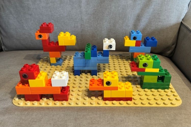 こちらが純正の「ブロックシリーズ」やさしい色合い特徴なのと、一番は目玉シールがついており、動物をつくってもよりかわいらしい仕上がりを楽しめます。