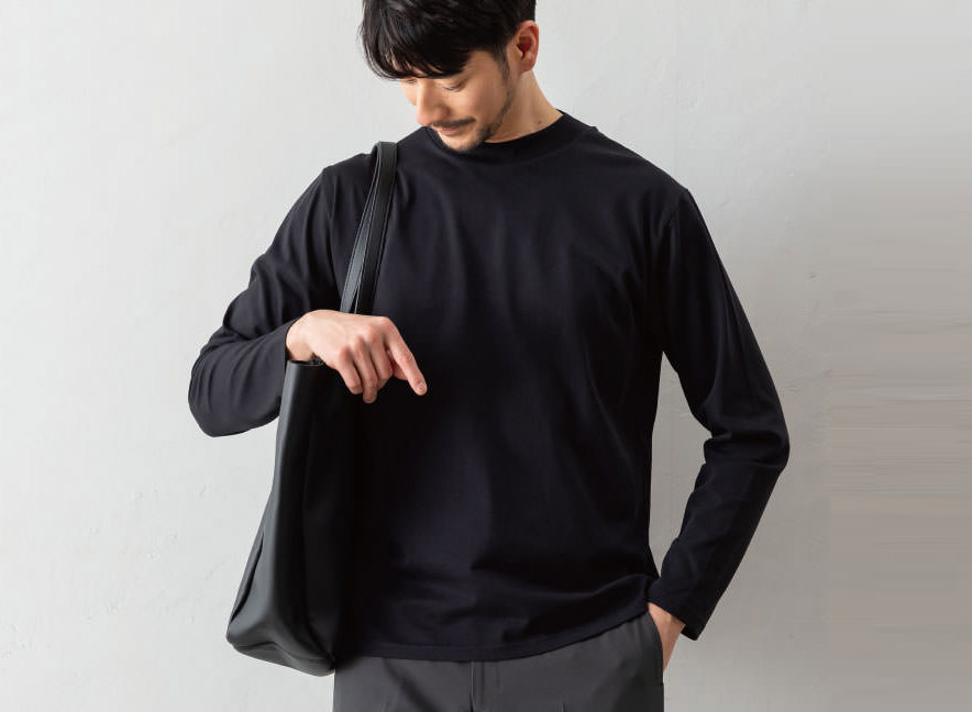 Tシャツよりもきちんと見え、シャツよりラフな絶妙なバランスをかなえるモックネックTシャツ。接触冷感と吸汗速乾機能を備え、汗ばむ環境下でも蒸れやべたつきを防止。サラリとした快適な着心地を維持する。脇下には消臭テープを施し、気になる臭いも抑制している。機能性を追求した一枚は、運動時やスーツのインナーとして幅広く活躍する。
